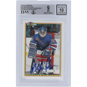 Mike Richter New York Rangers Autographed 1990-91 Bowman #218 Beckett Fanatics Witnessed Authenticated 9/10 Rookie Card Mike Richter New York Rangers Autographed 1990-91 Bowman #218 Becke...
