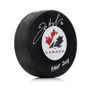 Jayna Hefford Signed Team Canada Hockey Puck with HOF NoteJayna Hefford Signed Team Canada Hockey Puck with HOF Note
