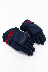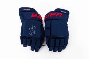Signed and Game-Used Bauer Navy Third Gloves by #84 Adam EdstromSigned and Game-Used Bauer Navy Third Gloves by #84 Adam Edstrom