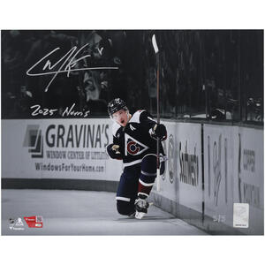 Cale Makar Colorado Avalanche Autographed 11" x 14" Navy Jersey Spotlight Celebration Photograph with "2025 Norris" Inscription - Limited Edition o...Cale Makar Colorado Avalanche Autographed 11" x 14" Navy ...
