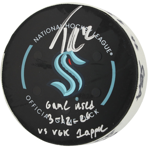 Tye Kartye Seattle Kraken Autographed Game-Used Puck vs. Vegas Golden Knights on March 12, 2024 with Multiple InscriptionsTye Kartye Seattle Kraken Autographed Game-Used Puck vs. Vegas Gold...