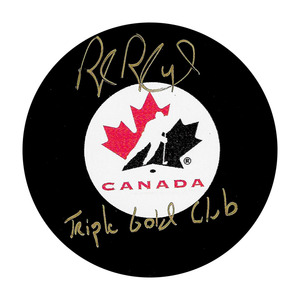 Rob Blake Autographed Team Canada Puck w/TRIPLE GOLD CLUB InscriptionRob Blake Autographed Team Canada Puck w/TRIPLE GOLD CLUB Inscription