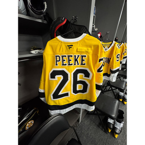 Andrew Peeke Boston Bruins #26 2026 NHL Stadium Series Game-Used Yellow Jersey - Worn During the 1st Period on February 1, 2026Andrew Peeke Boston Bruins #26 2026 NHL Stadium Series Game-Used Ye...